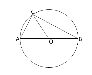 O কেন্দ্রীয় বৃত্তে AB একটি ব্যাস। AC জ্যা কেন্দ্রে 60° কোণ উৎপন্ন করলে \(\angle\)OCB -এর মান হবে (a) 20° (b) 30° (c) 40° (d) 50°