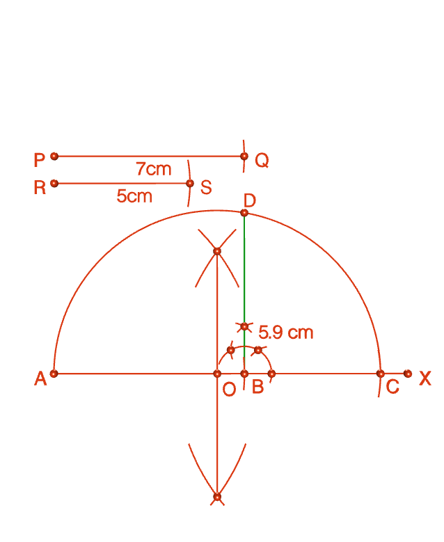 23. জ্যামিতিক পদ্ধতিতে 4 সেমি এবং 3 সেমি এর মধ্যসমানুপাতী নির্ণয় করো। (কেবলমাত্র অঙ্কন চিহ্ন দিতে হবে)।