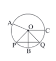 1. পাশের O কেন্দ্রীয় বৃত্তের ছবিতে OP\(\bot\)AB; AB=6 সেমি এবং PC=2 সেমি হলে, বৃত্তের ব্যাসার্ধের দৈর্ঘ্য হিসাব করে লিখি।