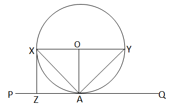 কোনো বৃত্তের XY একটি ব্যাস। বৃত্তটির উপর অবস্থিত A বিন্দুতে PAQ বৃত্তের স্পর্শক। X বিন্দু থেকে বৃত্তের স্পর্শকের উপর অঙ্কিত লম্ব PAQ-কে Z বিন্দুতে ছেদ করেছে। প্রমাণ করি যে, XA, ∠XYZ-এর সমদ্বিখণ্ডক।