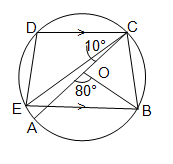 16. O কেন্দ্রীয় বত্তের AC ব্যাস এবং DC||EB, \(\angle\)AOB=80° এবং \(\angle\)ACE=10° হলে, \(\angle\)BEDএর মান নির্ণয় করাে।