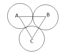 A,B এবং C কেন্দ্রীয় তিনটি সমান বৃত্ত পরস্পরকে