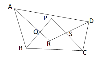 ধরি, ABCD একটি চতুর্ভূজের AR, BP, CP ও DR যথাক্রমে \(\angle\)A, \(\angle\)B, \(\angle\)C ও \(\angle\)D এর সমদ্বিখন্ডক পরস্পর মিলিত হয়ে PQRS চতুর্ভূজ উৎপন্ন করেছে ।