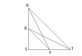 RST ত্রিভুজের \(\angle\)S সমকোণ। RS ও ST বাহুদ্বয়ের মধ্যবিন্দু যথাক্রমে X ও Y; প্রমাণ করি যে, RY\(^2\) + XT\(^2\) = 5XY\(^2\)