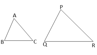 \(\therefore \cfrac{AB}{PQ}=\cfrac{BC}{QR}=\cfrac{CA}{RP}\)