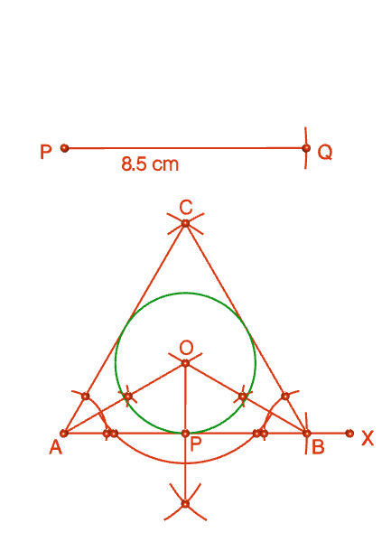 8. 7 সেমি বাহুবিশিষ্ট একটি সমবাহু ত্রিভূজ অঙ্কন করো। তারপর ঐ ত্রিভূজটির অন্তর্বৃত্ত অঙ্কন করো । Madhyamik 2013