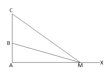 AX ভূমির সমতলে অবস্থিত একটি বিন্দু M থেকে AB=10 মিটার উঁচু দেওয়ালের উপরে অবস্থিত BC=20 মিটার দীর্ঘ একটি পতাকা দণ্ড \(\angle\)CMA কোণ উৎপন্ন করে যার tan\(\angle\)CMA=0.5। যদি উক্ত M বিন্দুতে দেওয়ালটি \(\angle\)BMA=\( \theta\) কোণ উৎপন্ন করে ।