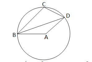 ABCD চতুর্ভুজের A বিন্দুকে কেন্দ্র করে একটি বৃত্ত অঙ্কন করা হলো যেটি B, Cও D বিন্দু দিয়ে যায়।প্রমাণ করি যে, \(\angle\)CBD + \(\angle\)CDB =\(\cfrac{1}{2}\angle\)BAD