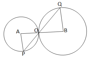 A এবং B কেন্দ্রীয় বৃত্ত পরস্পরকে O বিন্দুতে বহিঃস্পর্শ