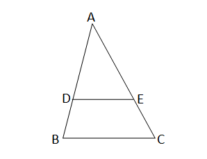 \(\triangle\)ABC এর BC-এর সমান্তরাল সরলরেখা AB ও AC-কে যথাক্রমে D ও E বিন্দুতে ছেদ করলে প্রমাণ করো, \(\cfrac{AD}{AB}=\cfrac{AE}{AC}\)