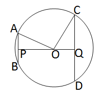 O কেন্দ্রীয় বৃত্তের AB=10 সেমি ও CD=24 সেমি দৈর্ঘ্যের দুটি সমান্তরাল জ্যা । এবং AB ও CD জ্যা দুটির মধ্যে দূরত্ব PQ=17 সেমি